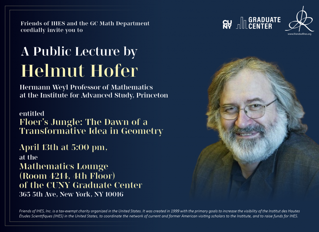 Friends of IHES is delighted to announce a Public Lecture by Helmut Hofer, Hermann Weyl Professor of Mathematics at the Institute for Advanced Study.
